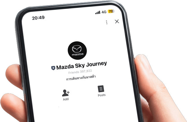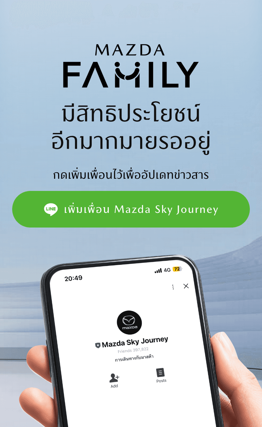 เพิ่มเพื่อน Mazda Sky Journey บน LINE เพื่อรับประสบการณ์การเป็นครอบครัวมาสด้า
